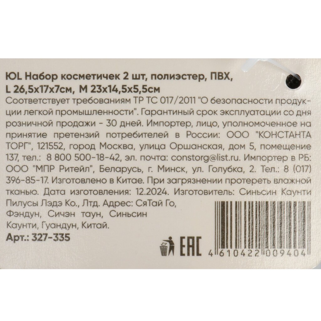 Набор косметичек ЮниLook — это практичный и стильный аксессуар, который поможет организовать хранение косметики, бижутерии или мелких предметов. Благодаря двум размерам (26х17х7 см и 23х14,5х5,5 см) вы легко разделите уходовые средства и декоративную косметику, а прочный ПВХ защитит содержимое от случайных протечек и загрязнений. Часто спрашивают: «Как выбрать косметичку для поездки?» — этот набор идеален для ручной клади и поездок на дачу, так как обе косметички легкие, компактные и не занимают много места в сумке.
