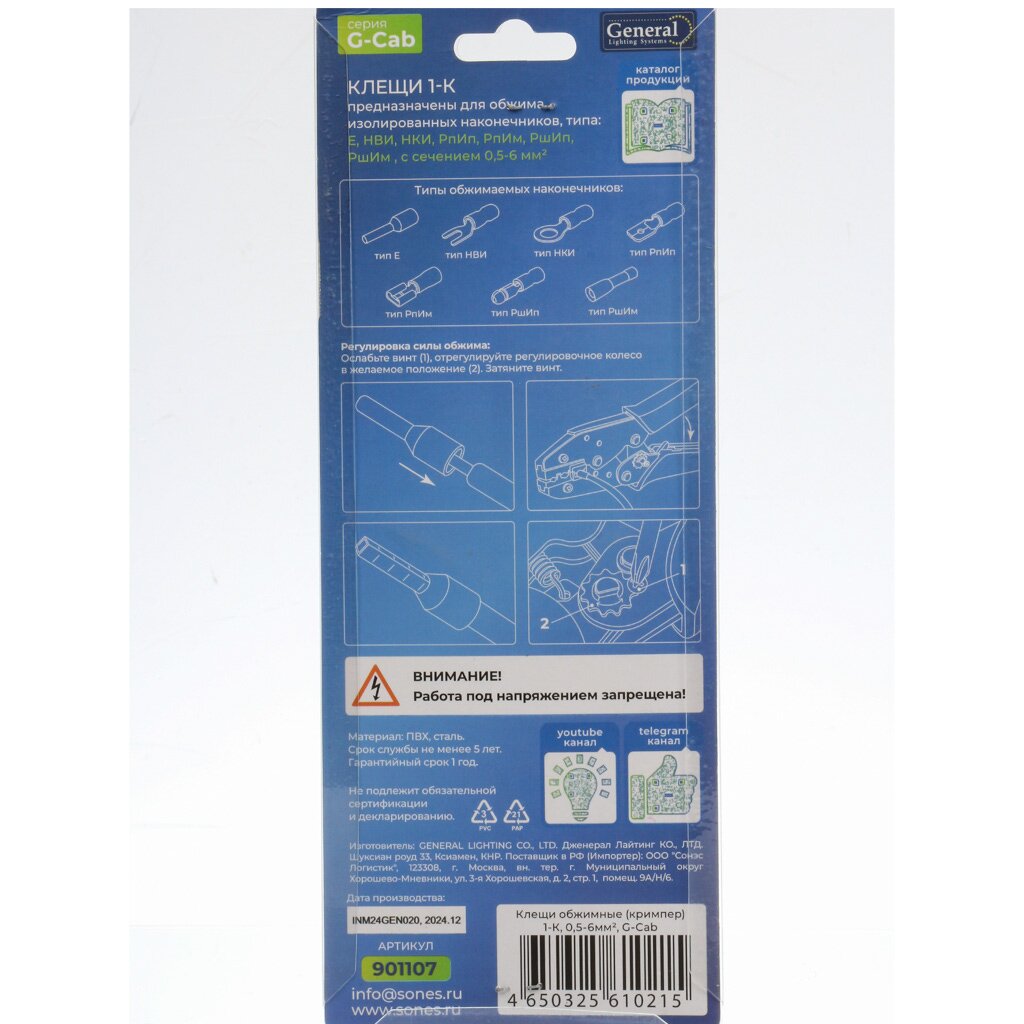 Кримпер General Lighting Systems 1-К G-Cab 0.5-6 мм — удобный инструмент для быстрой и надежной обжимки проводов, подходит для дома и профессионального монтажа.