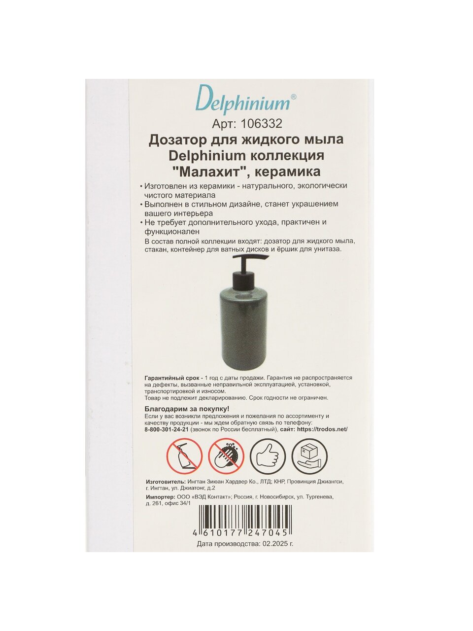 Если вы ищете, какой дозатор лучше для жидкого мыла на кухню или в ванную, обратите внимание на устойчивость и легкость ухода. Керамический корпус легко очищается от налёта, не тускнеет со временем. В отличие от пластиковых аналогов, дозатор Delphinium Малахит не деформируется и не желтеет. Для дачи или подарка — это практичное и стильное решение, которое прослужит долго.