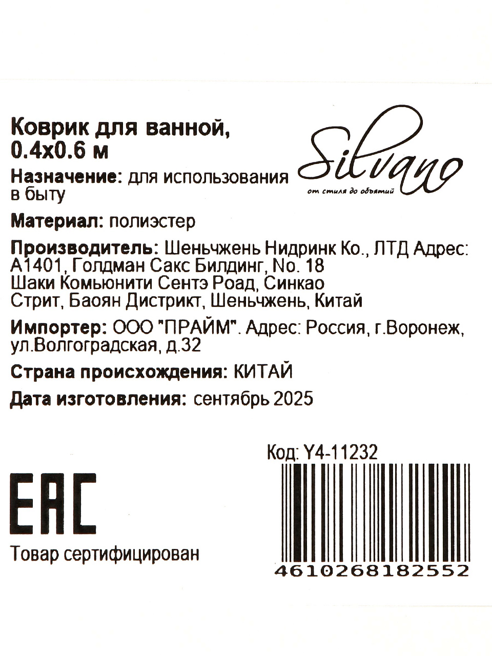 | Бренд | Silvano |