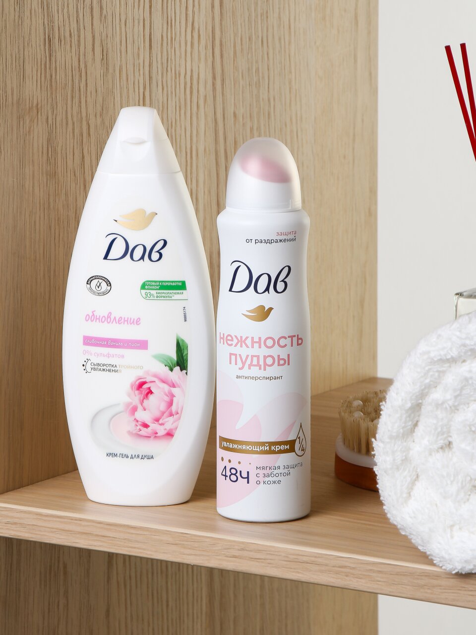 Подарочный набор для женщин Dove «Обновление»: крем-гель для душа 250 мл и дезодорант-спрей 150 мл — забота о коже и свежести на весь день, идеальный подарок по цене без переплат.