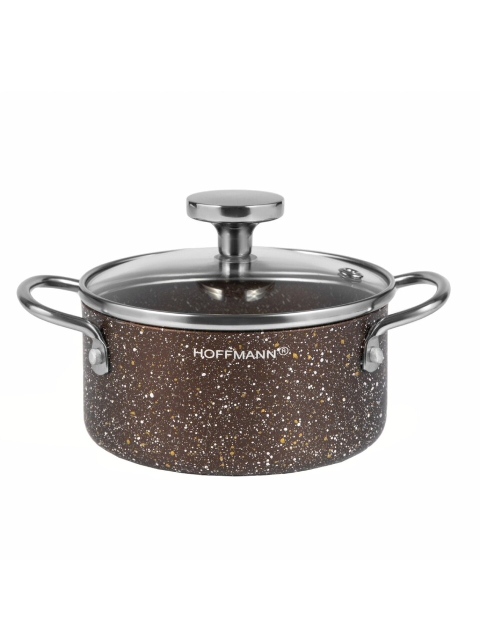 Кастрюля Hoffmann 0.8 л с антипригарным покрытием и стеклянной крышкой — идеальное решение для быстрой готовки без пригорания, подходит для всех плит, включая индукцию.