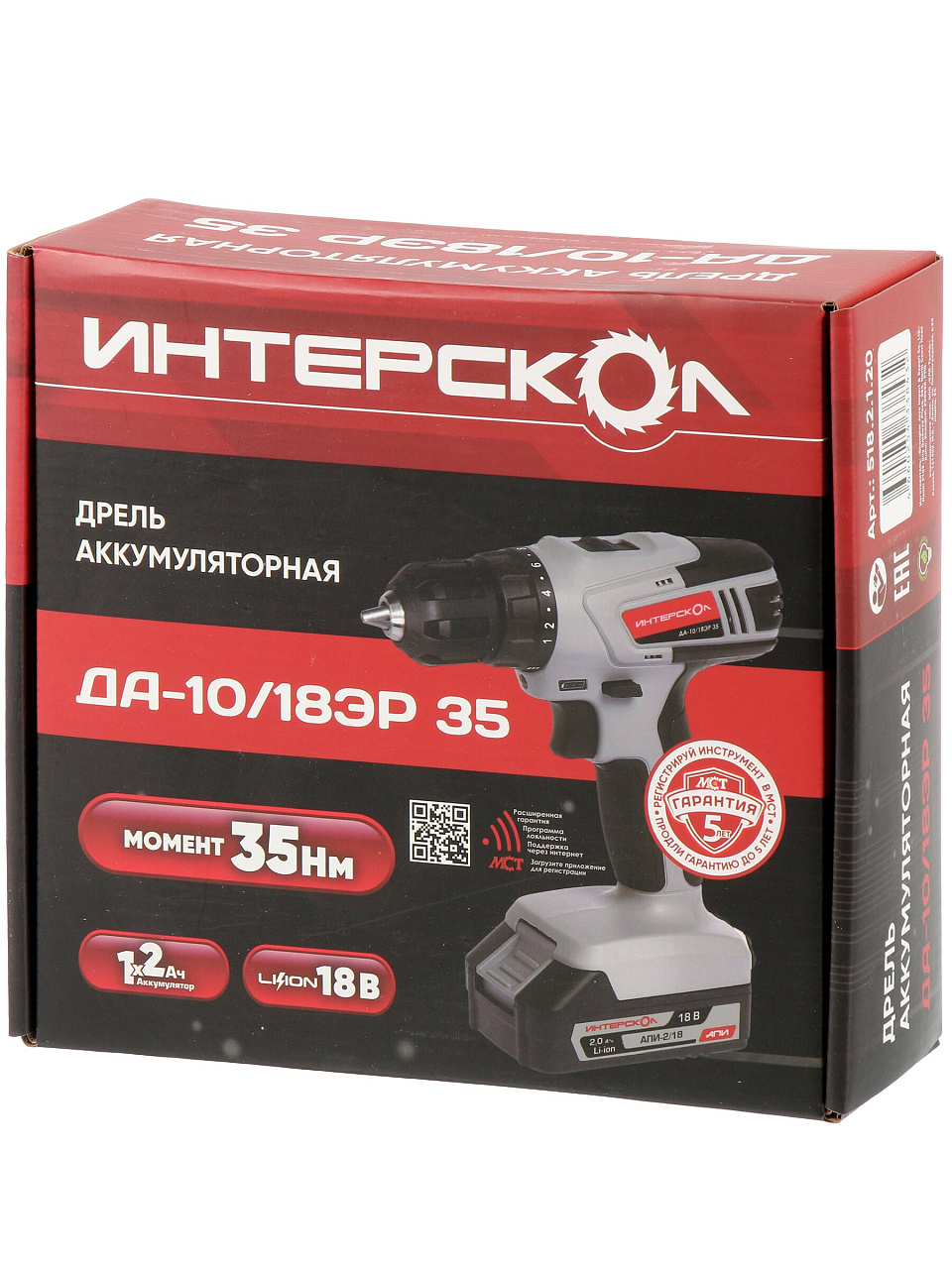 Дрель-шуруповерт Интерскол ДА-10/18ЭР 18В — универсальное решение для дома и дачи: 2 скорости, Li-ion аккумулятор, экокейс в комплекте, выгодная цена.