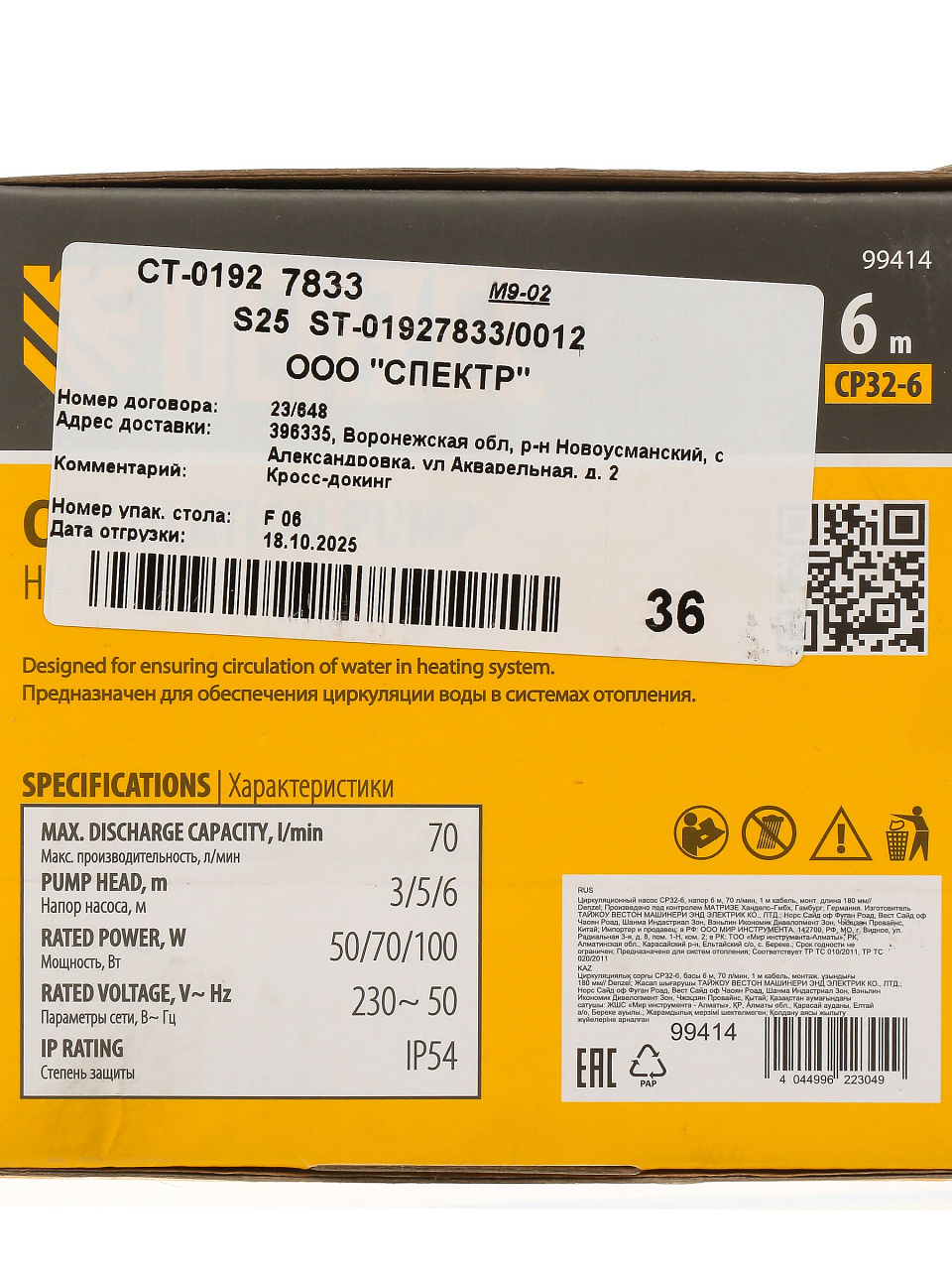 Циркуляционный насос Denzel CP32-6 — надёжное решение для отопления дома и дачи: экономия энергии, напор до 6 м, гарантия 36 месяцев.