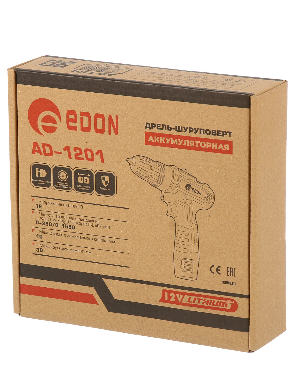 Дрель-шуруповерт Edon AD-1201 12В — легкий и мощный инструмент для дома и дачи: 25+1 режим, Li-ion аккум, подсветка, выгодная цена и гарантия 12 мес.