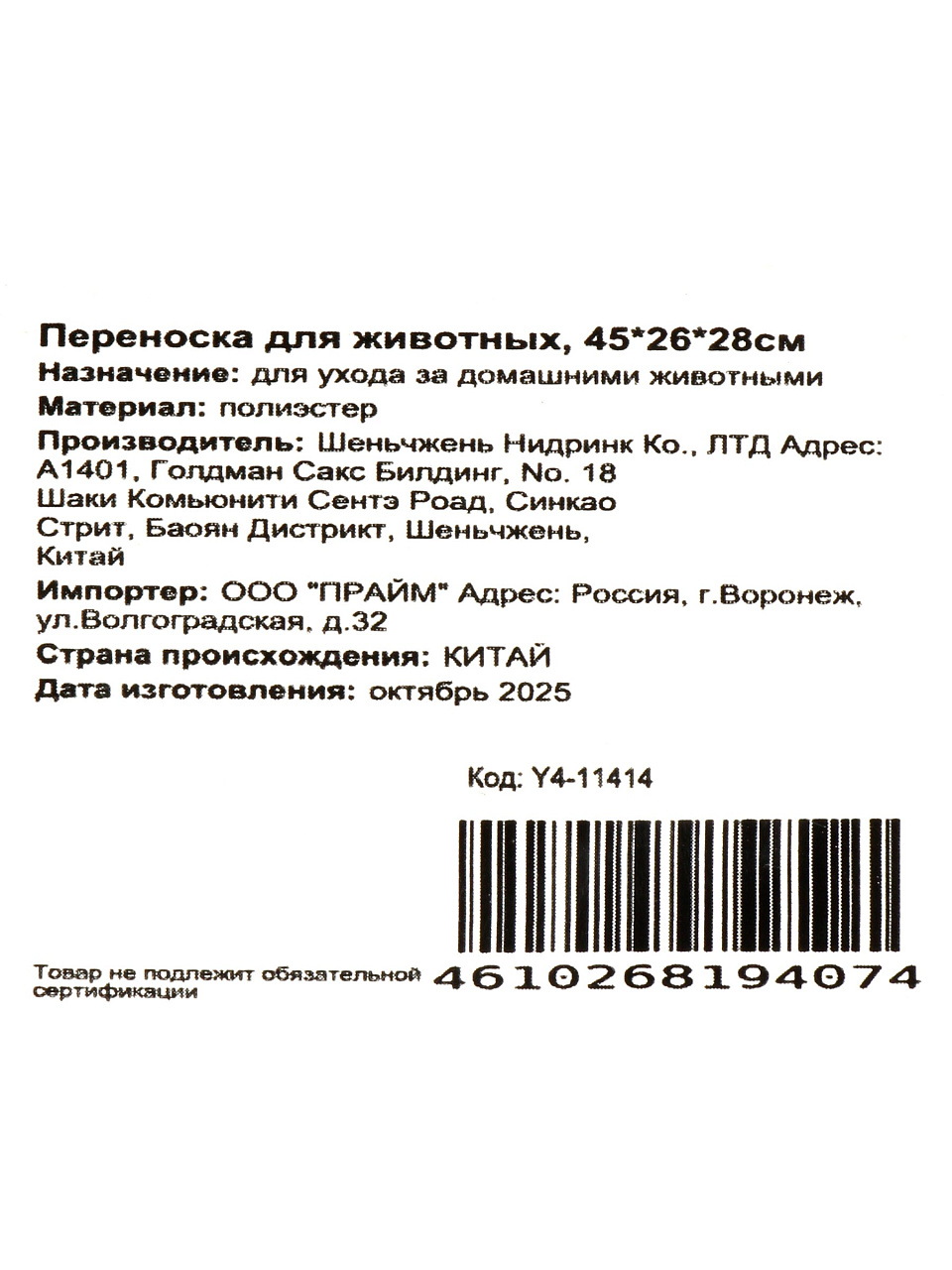 Переноска для животных 45х26х28 см Y4-11414: безопасная транспортировка питомца дома и в путешествии, компактно и удобно — решает проблему перевозки без стресса.