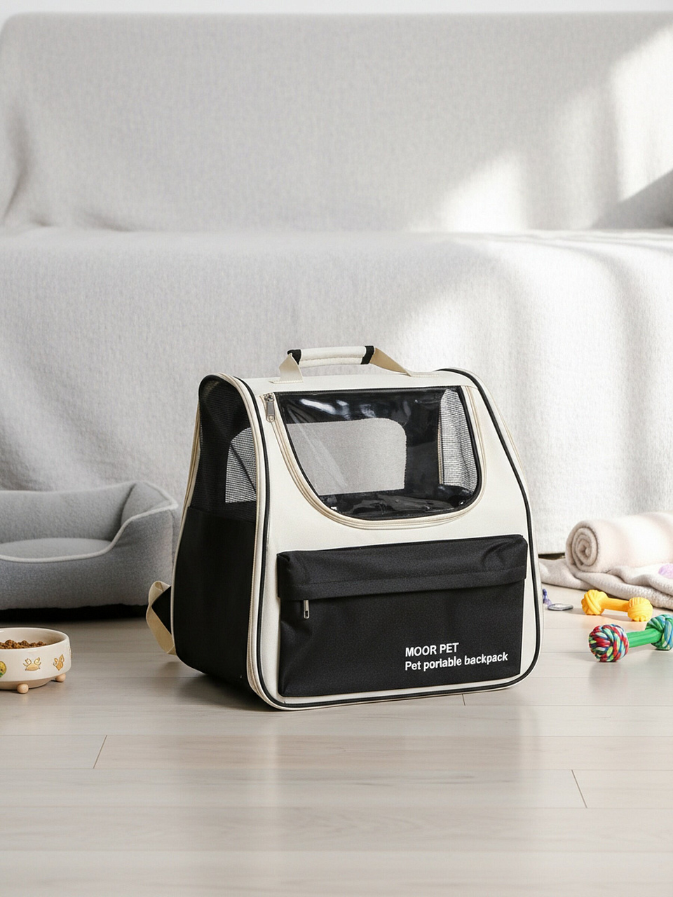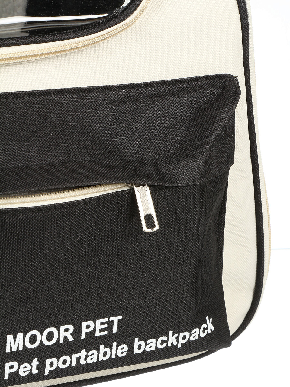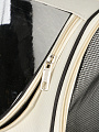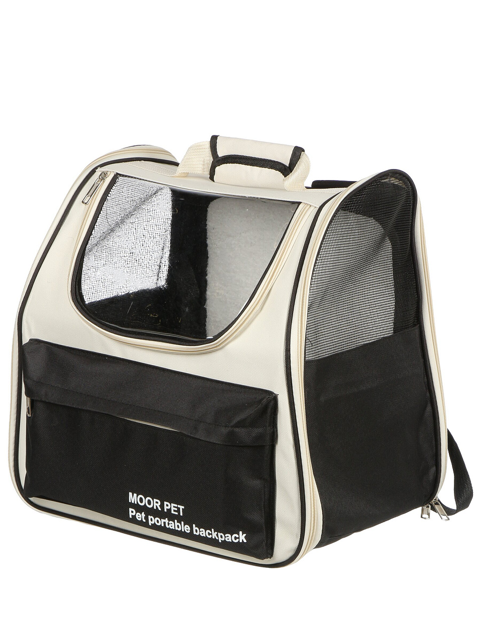 Переноска изготовлена из прочного полиэстера с сетчатыми вставками, что обеспечивает долговечность и комфорт для животного.