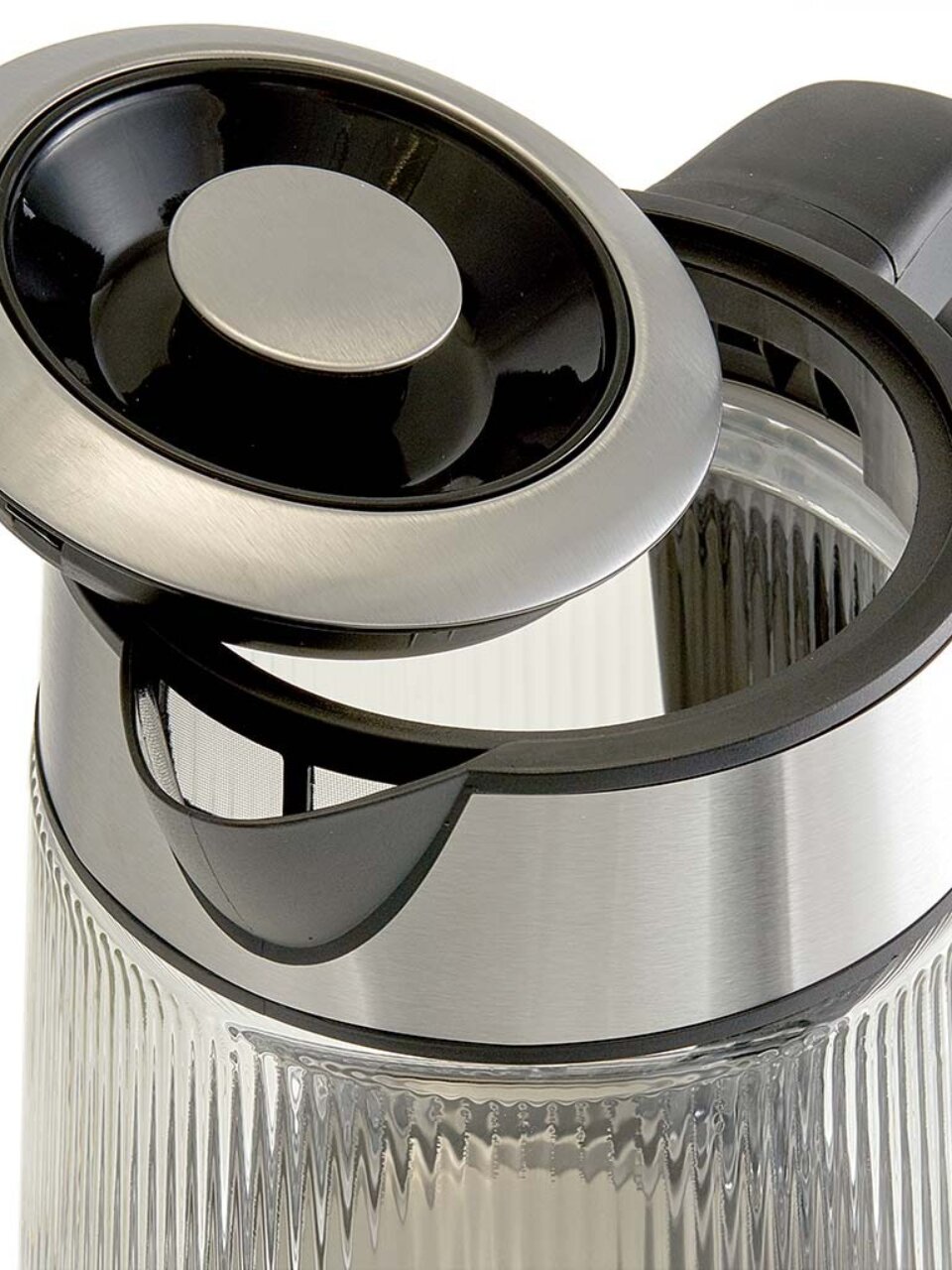 Стеклянный корпус не впитывает запахи и позволяет видеть уровень воды. LED-подсветка и автоотключение делают использование комфортным и безопасным. Модель подходит для интенсивного ежедневного использования.