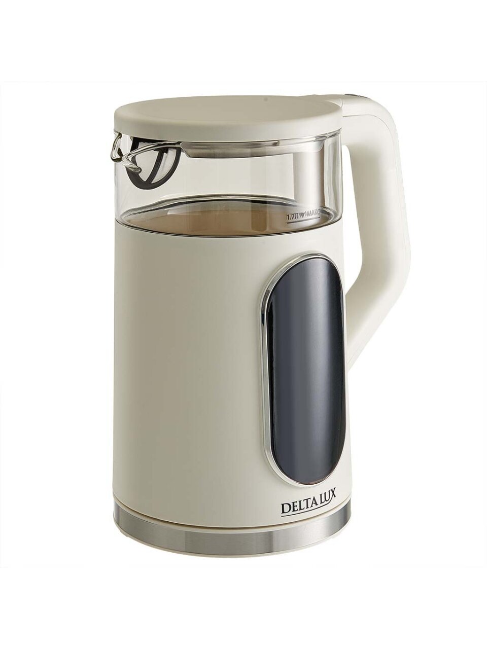 Если вы ищете, какой электрический чайник выбрать для дома или дачи, обратите внимание на Delta Lux DE-1025. Модель сочетает в себе надежность, современный дизайн и простоту использования — стеклянный корпус не впитывает запахи, а скрытый нагревательный элемент защищён от накипи и упрощает уход. Сенсорное управление и LED-индикатор делают эксплуатацию максимально интуитивной.