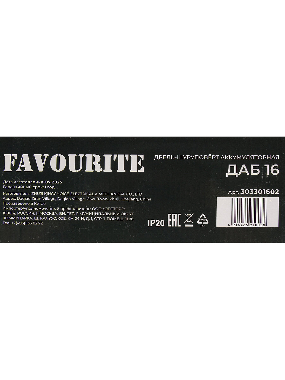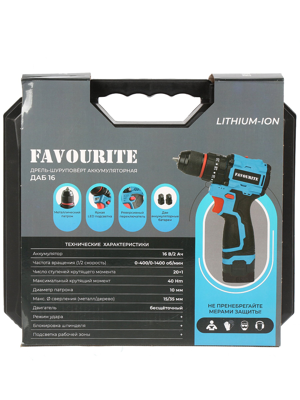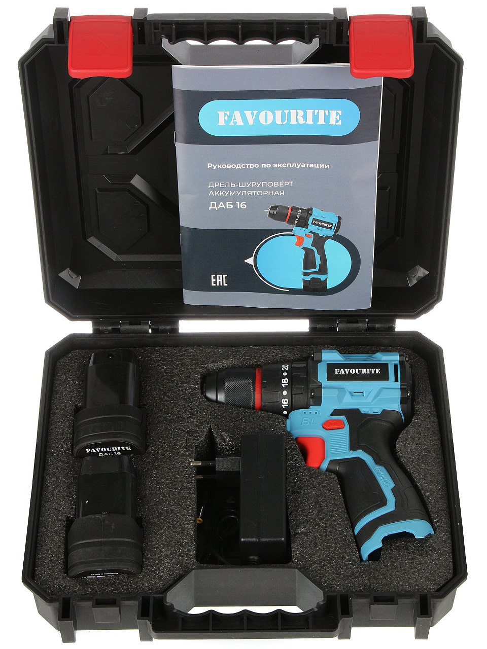 Дрель-шуруповерт Favourite ДАБ 16 — универсальное решение 2-в-1: два аккумулятора, кейс и мощность 40 Нм для ремонта, дачи и подарка, по выгодной цене.