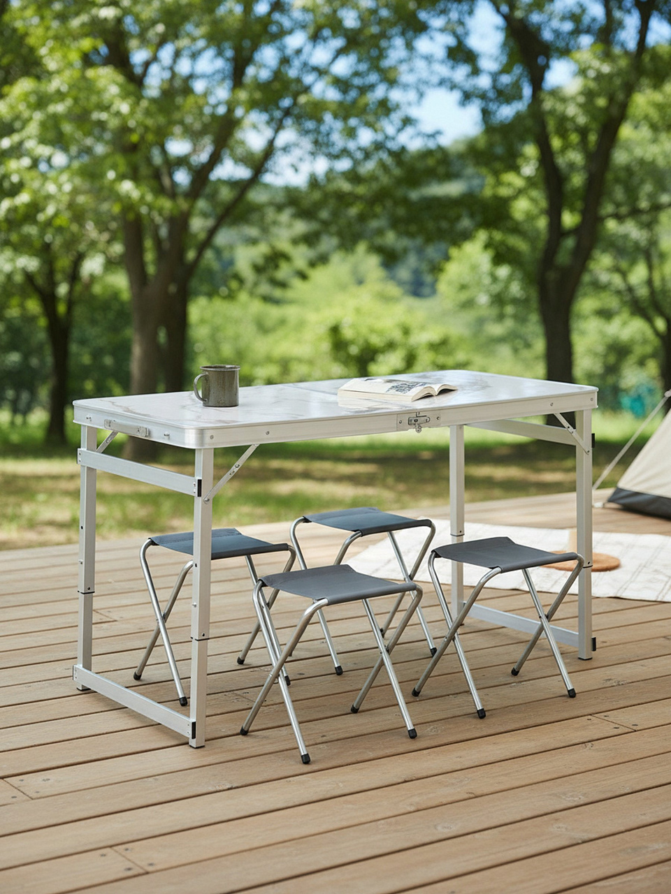 Этот комплект — оптимальный выбор для тех, кто ищет мобильную мебель, сочетающую эстетику и функциональность. В отличие от бюджетных пластиковых аналогов, столешница из МДФ с покрытием «под мрамор» выглядит презентабельно и обеспечивает ровную поверхность для сервировки. Металлический каркас гарантирует устойчивость конструкции даже на неровном дачном грунте, а защитное покрытие предотвращает преждевременную коррозию.