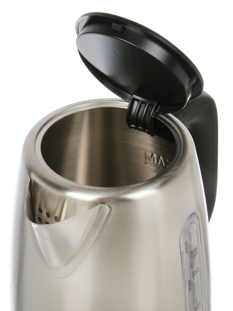 Скрытый нагревательный элемент препятствует образованию накипи, облегчает уход за чайником и продлевает срок его службы. Это особенно важно для регионов с жесткой водой.
