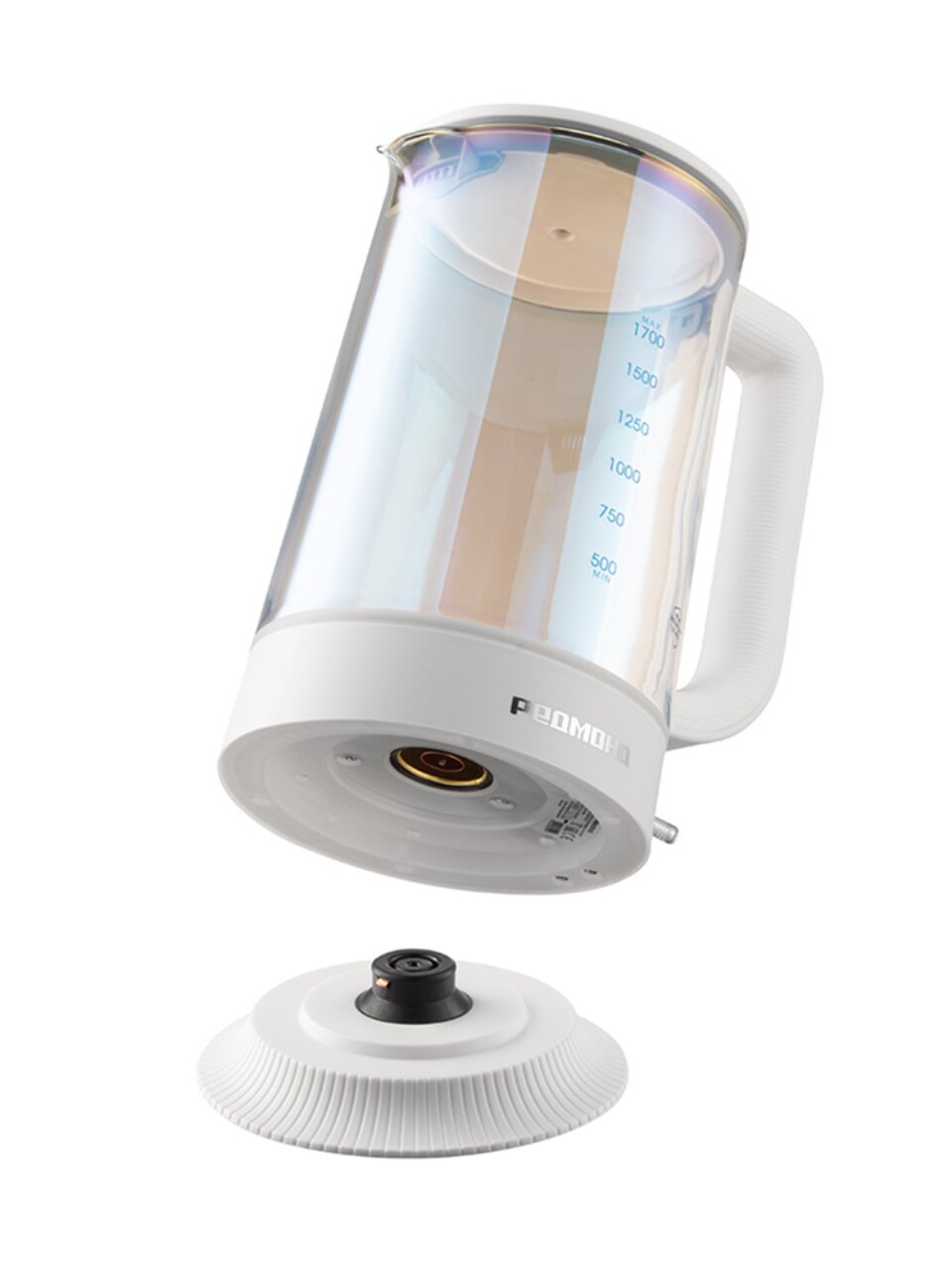 Чайник рассчитан на 1,7 литра, выполнен из термостойкого стекла с надёжным нагревательным элементом Strix.