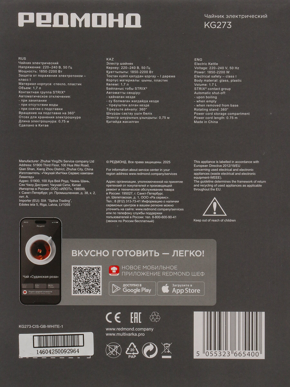 Выбирайте выгодно — закажите электрический чайник Редмонд Strix KG273 с гарантией качества и быстрой доставкой. Это удобное решение для вашей кухни, которое прослужит долго и подарит комфорт каждый день.