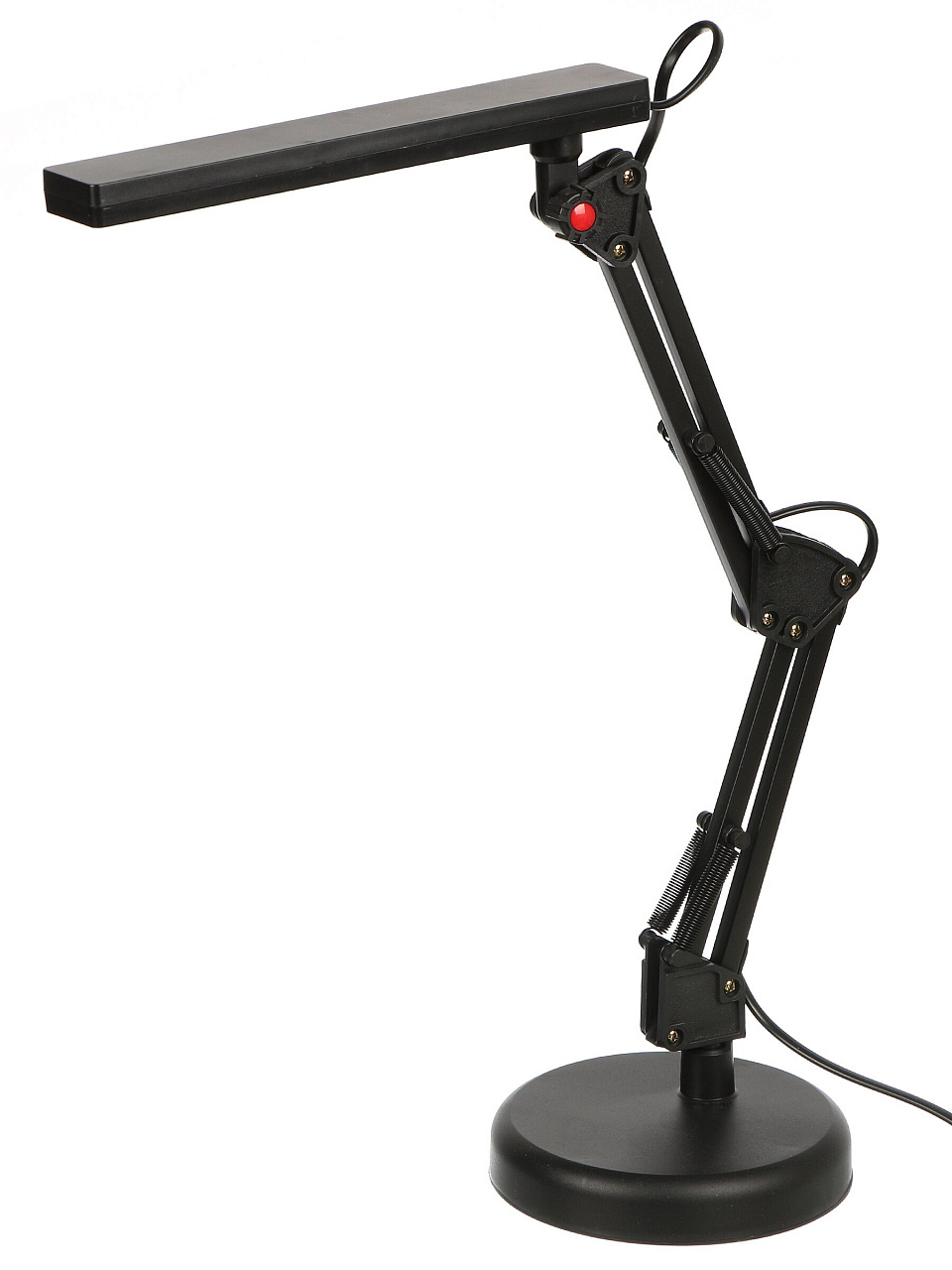 Мощность — 5 Вт, питание от сети, черный цвет арматуры и абажура, материал — металл и пластик, управление — механическое, конструкция — жесткая с регулировкой высоты.