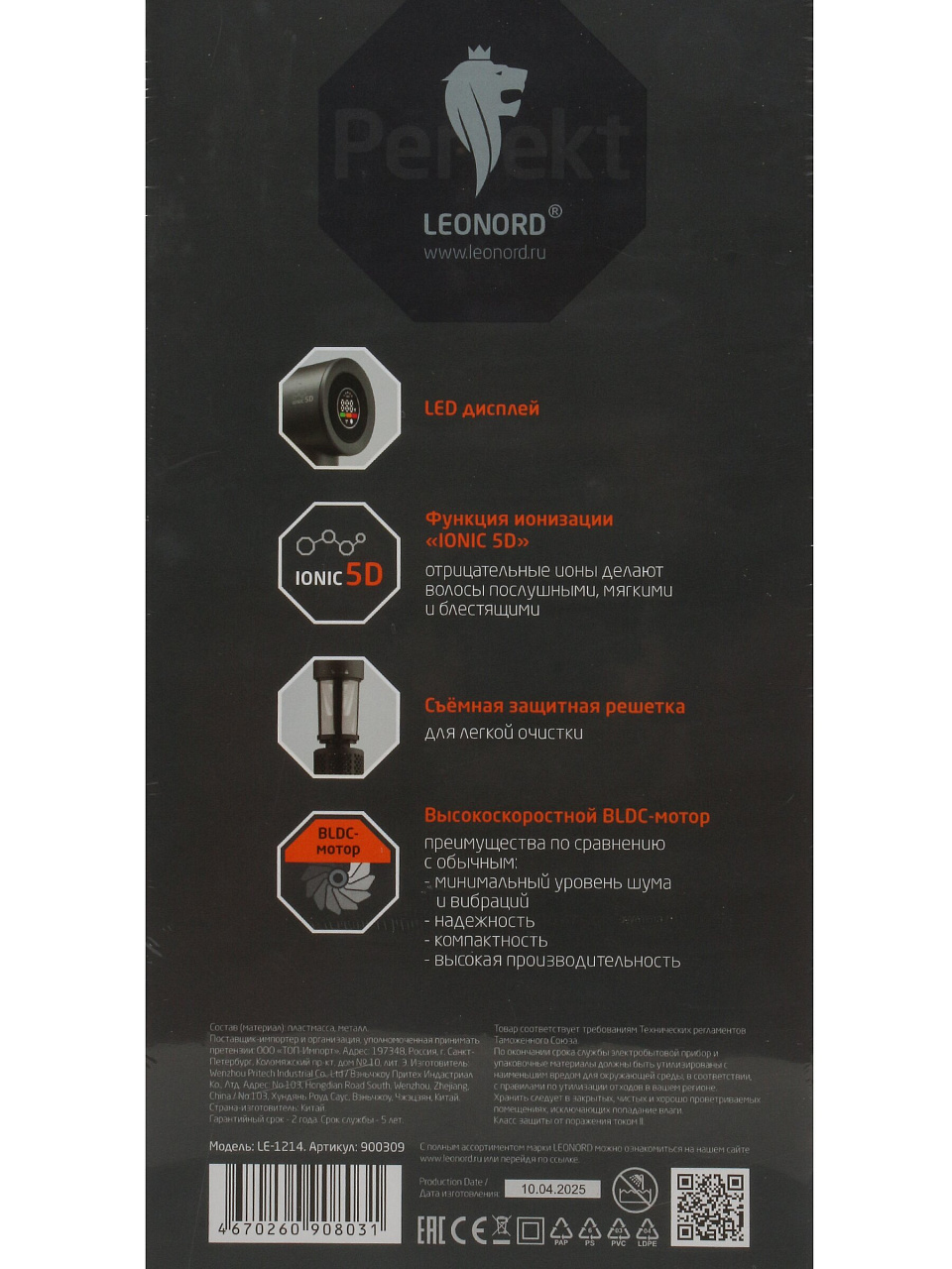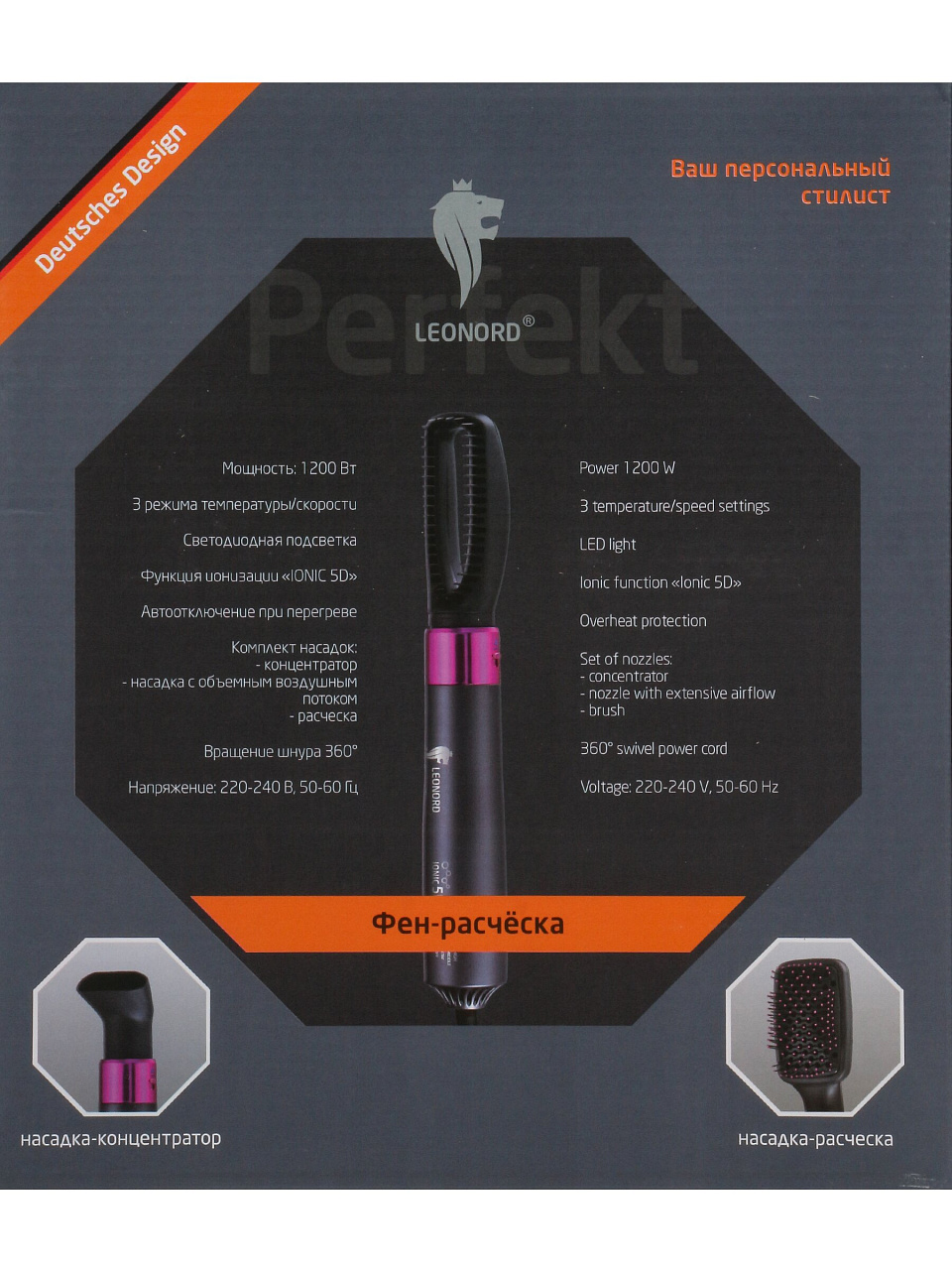 Оформите заказ на фен Leonord LE-1214 сейчас — получите современное решение для быстрой и безопасной укладки с гарантией 24 месяца и доставкой по выгодной цене.