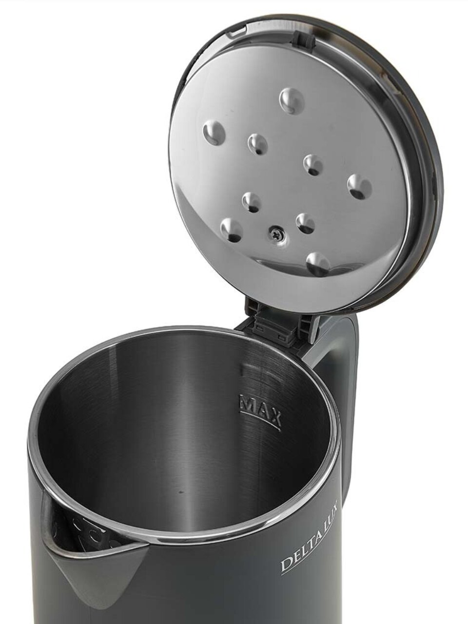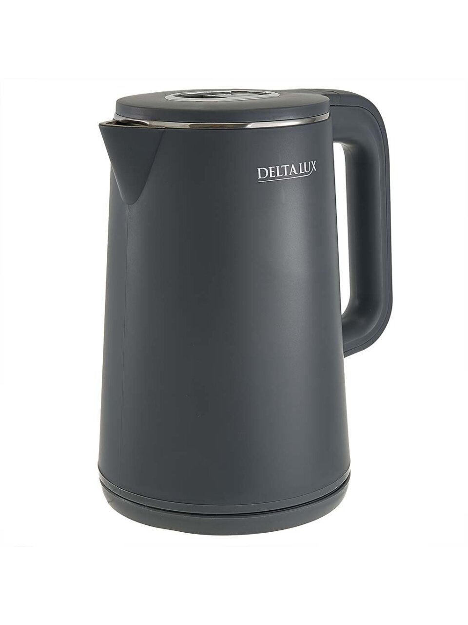 Часто спрашивают: «Какой электрический чайник лучше для дома или дачи?» — Delta Lux DL-1023 сочетает высокую мощность (2000 Вт), защиту от включения без воды и вращение на 360°, что выгодно отличает его от обычных моделей с открытой спиралью. Сенсорное управление, LED-подсветка и отсек для шнура — детали, которые делают эксплуатацию комфортной. Подходит ли для подарка? — Да, современный дизайн и универсальный серый цвет впишутся в любой интерьер.