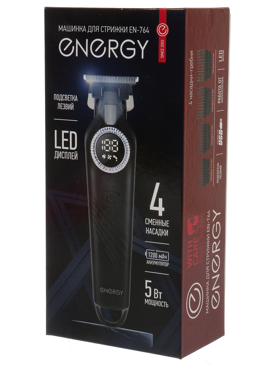 Если вы ищете, чем отличается машинка для стрижки с аккумулятором от проводной, обратите внимание на мобильность и безопасность использования — Energy EN-764 не ограничивает движения и защищена от скачков напряжения.