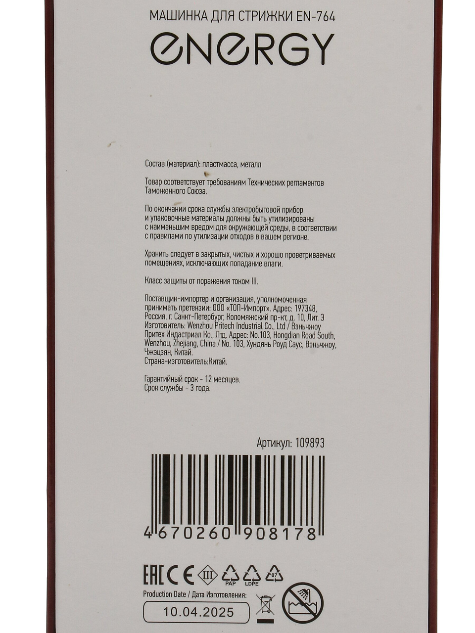 Закажите машинку для стрижки Energy EN-764 прямо сейчас — получите гарантию, быструю доставку и возможность вернуть товар без лишних вопросов. Надёжное решение для стильной стрижки дома и на даче.