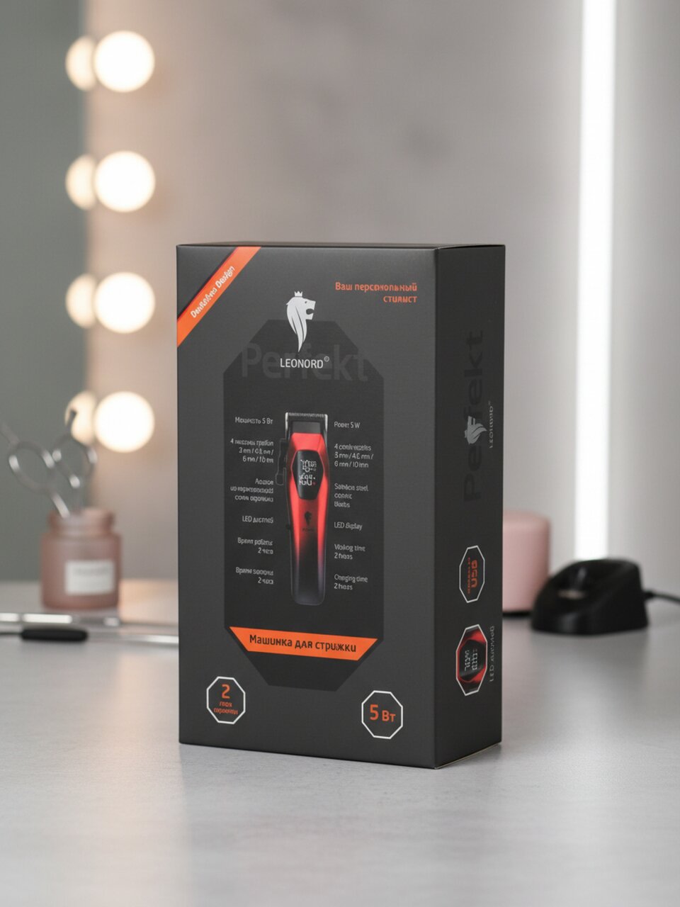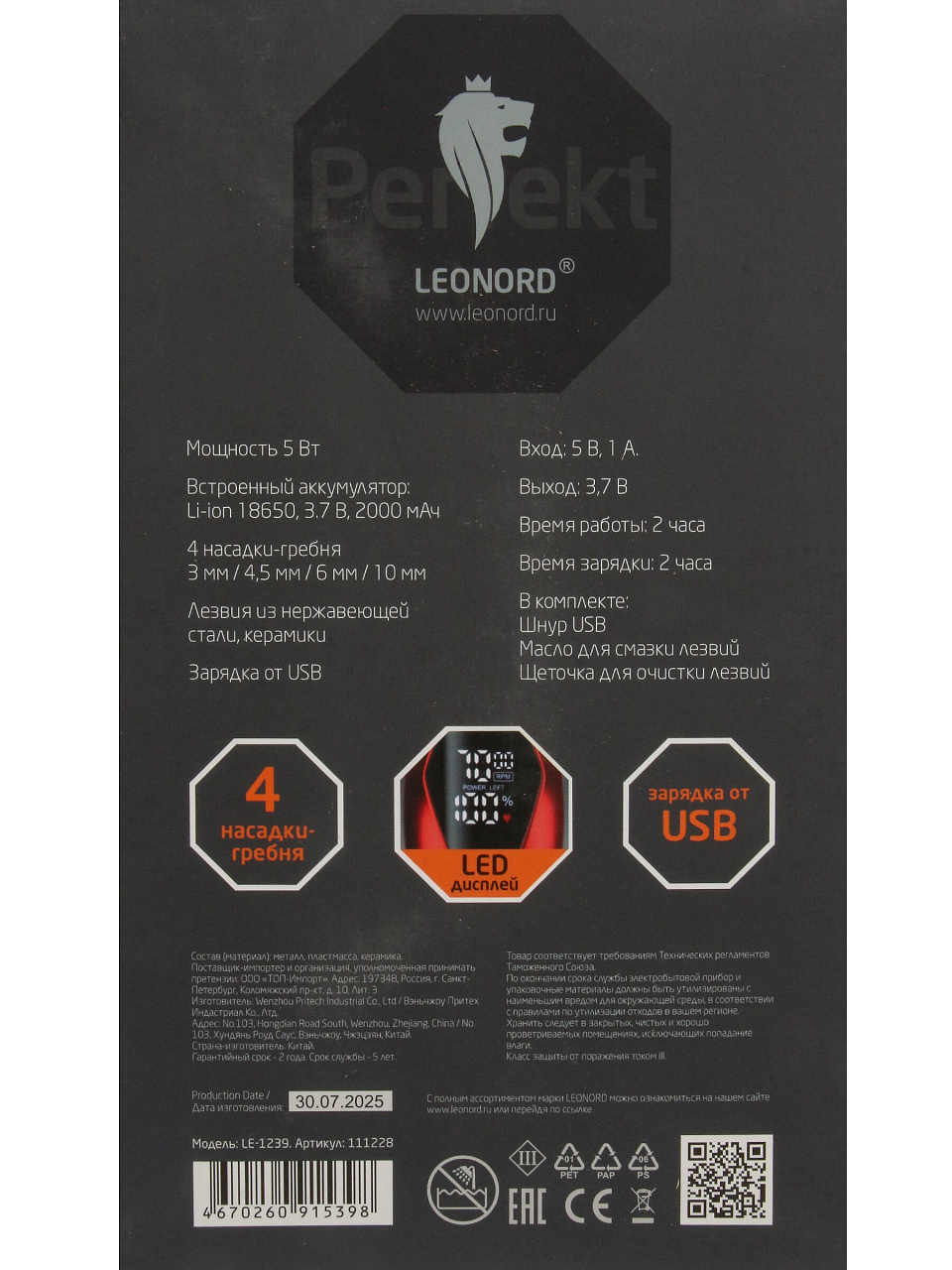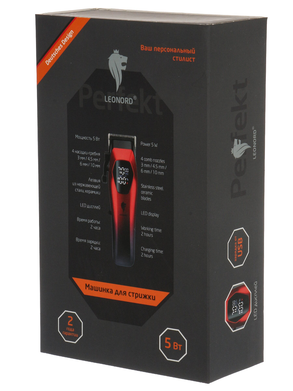 Машинка для стрижки Leonord LE-1239 с LED-дисплеем: точная стрижка, до 120 минут работы без подзарядки, компактна для дома и поездок.