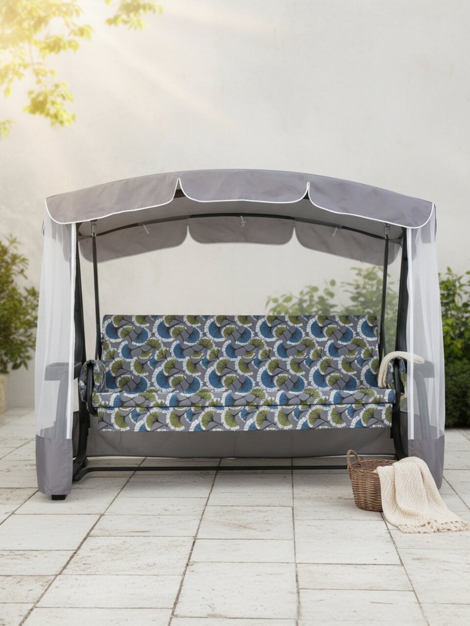 Многие спрашивают: «Как выбрать садовые качели для семьи?» — обратите внимание на максимальную нагрузку (здесь — до 350 кг) и материалы. В отличие от моделей с пластиковыми элементами, эта конструкция рассчитана на длительную эксплуатацию без деформаций. Москитная сетка в комплекте — дополнительная защита от насекомых, что особенно важно для дачного отдыха. Если вы ищете, что лучше для дачи — стационарные качели или мобильные, обратите внимание на вес (46,8 кг): эту модель можно перемещать, но она устойчива даже на неровной поверхности.