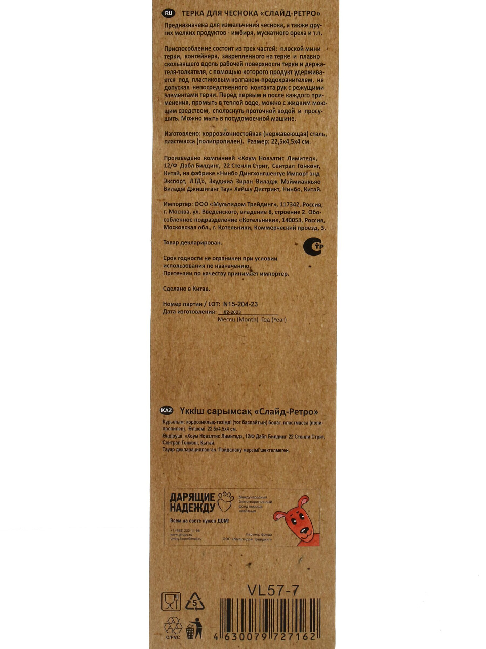 Благодаря эргономичной форме и прочной стали, терка не скользит, быстро натирает чеснок, подходит для других овощей, легко моется и сохраняет остроту лезвий даже при частом использовании.