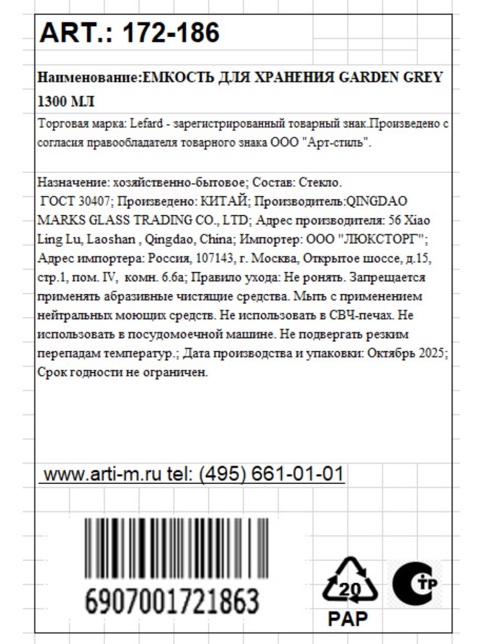 Банка Lefard Garden Grey объемом 1.3 литра — это практичное решение для хранения сыпучих продуктов: круп, сахара, макарон, орехов. Прозрачное рельефное стекло позволяет видеть содержимое, а герметичная крышка защищает от влаги и посторонних запахов. Часто спрашивают, «как выбрать банку для круп» — обратите внимание на материал и плотность прилегания крышки: стекло не впитывает запахи, легко моется в посудомоечной машине, а герметичная крышка гарантирует долгий срок хранения.