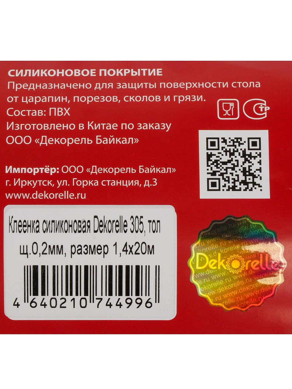 Клеенка Dekorelle 1.4х20 м, силикон, 0.2 мм — идеальное покрытие для защиты стола от пятен, влаги и царапин. Удобный рулон для дома, дачи и бизнеса.