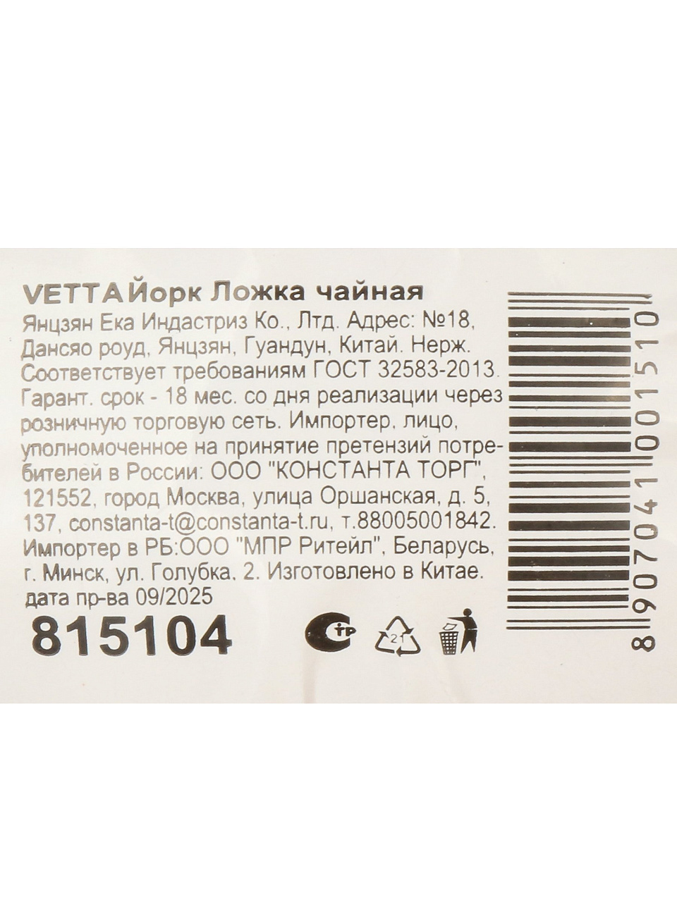 Выбирайте чайную ложку Vetta Йорк — выгодно купить с доставкой, чтобы добавить надежный и стильный столовый прибор в вашу коллекцию. Закажите сейчас и оцените удобство в быту и на празднике!