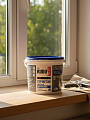 Объём упаковки — 7 кг, цвет — белый. Такой формат удобен для масштабных внутренних работ, легко наносится и подходит под последующую покраску.
