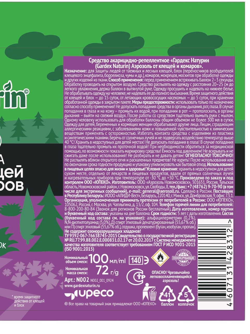 Gardex Naturin предназначен для взрослых, может использоваться в помещении и на улице, объем 100 мл, рассчитан на индивидуальное применение. Для детей не рекомендован.