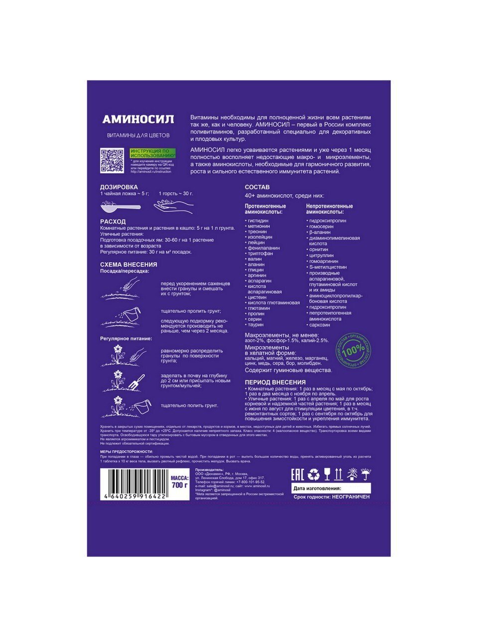 Удобрение для цветов Аминосил в гранулах, 700 г — быстрый рост и обильное цветение ваших растений круглый год без лишних хлопот.