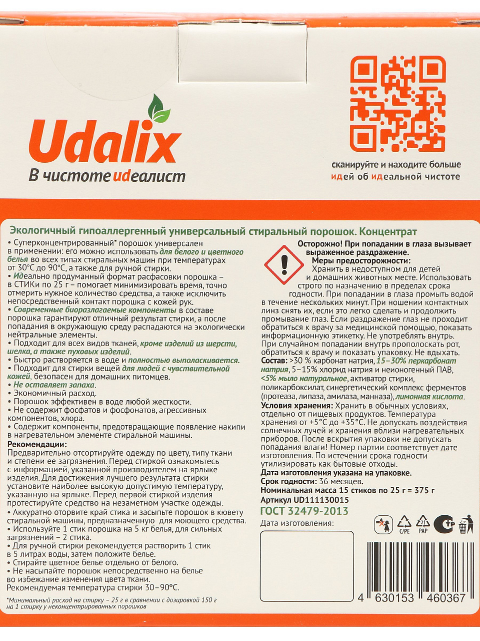 Стиральный порошок Udalix: гипоаллергенный концентрат в стиках — чистота белья без раздражения, удобно взять с собой, экономия на каждой стирке.