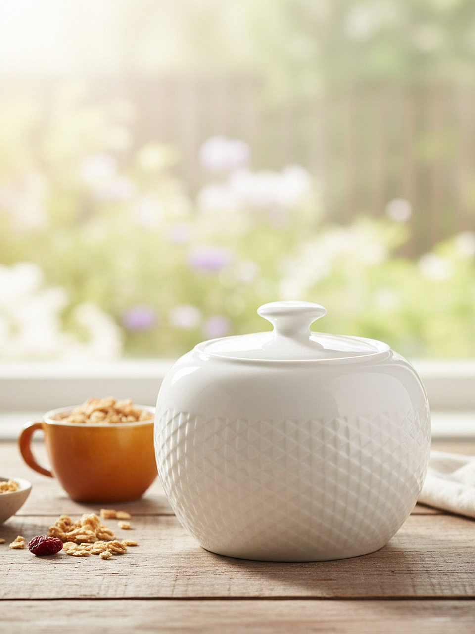 Да, благодаря плотной крышке и фарфоровым стенкам, она отлично подходит для хранения орехов, специй, конфет и других сыпучих продуктов.