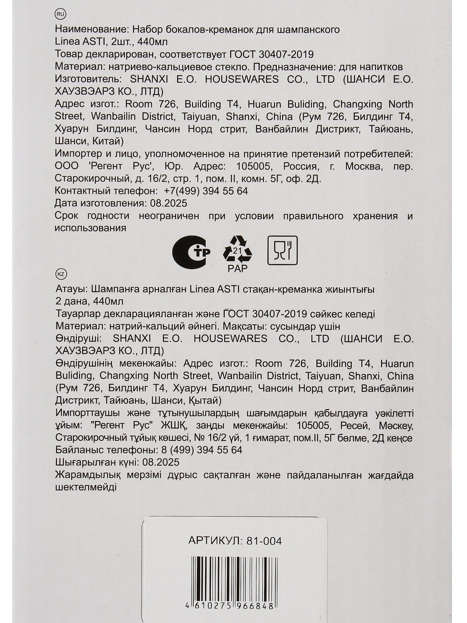 | Тип | набор бокалов |