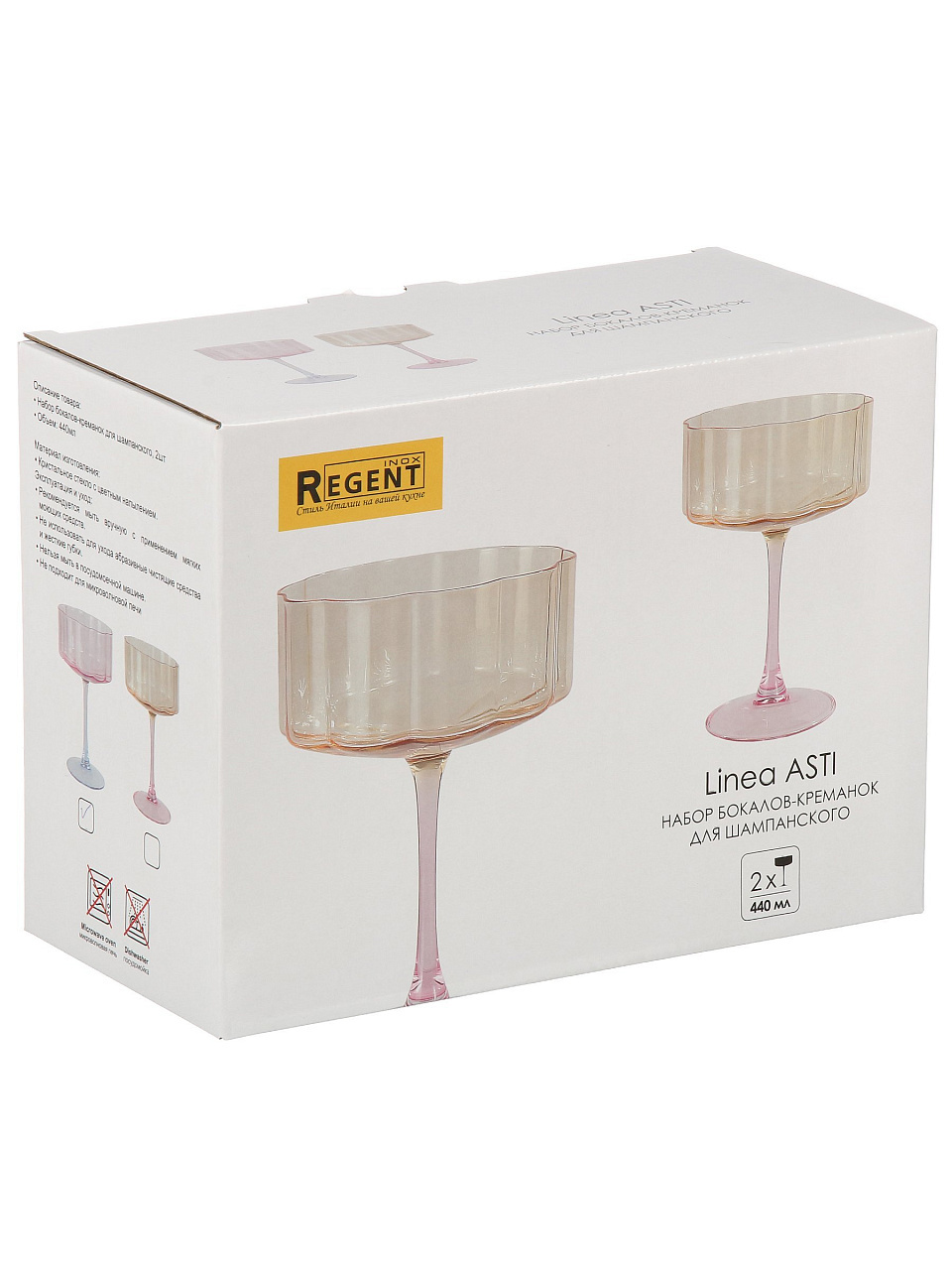 Бокалы-креманки Regent Inox ASTI, 440 мл, 2 шт — стильный выбор для сервировки десертов и коктейлей, идеальны для праздников и уютных вечеров дома.