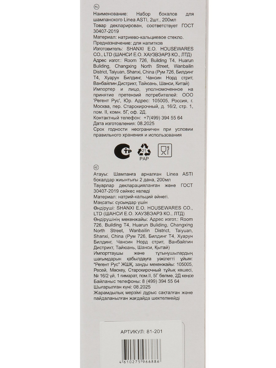 Бокалы для шампанского Regent Inox ASTI 200 мл (2 шт): премиальное стекло для дома и подарка — элегантность, долговечность, оптимальный объём.