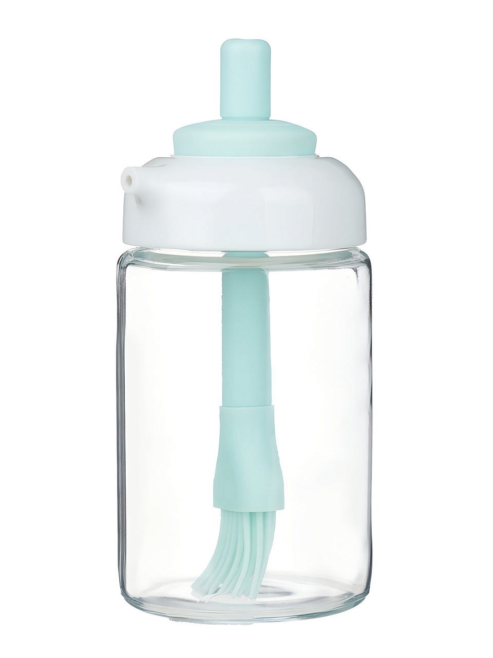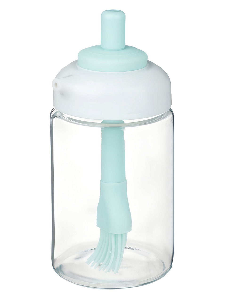 Бутылка выполнена из прозрачного стекла, а кисточка — из термостойкого силикона, безопасного для пищевых продуктов.