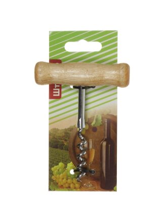 Штопор металл, с деревянной ручкой, навеска, YW-G364/D-048