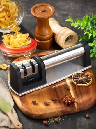 Точилка для ножей, нержавеющая сталь, 20.5х6х6.2 см, черная, Daniks, S-Z58310