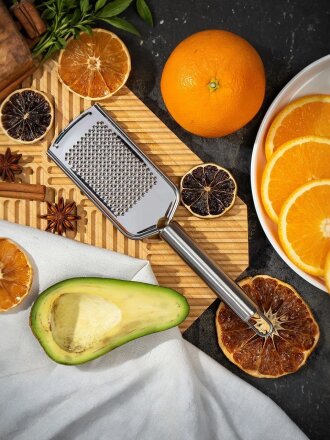 Терка ручная 24.5 см, нержавеющая сталь, рукоятка нержавеющая сталь, мелкая, Daniks, Classic, S-DC12-KT1119-28