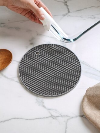 Подставка под горячее, силикон, 17.5х17.5 см, серая, Daniks