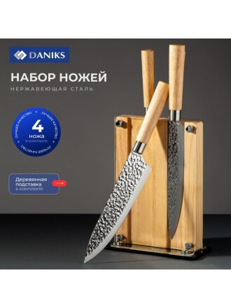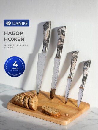 Набор ножей 4 предмета, 20 см, 20 см, 12.5 см, 9 см, нержавеющая сталь, рукоятка нержавеющая сталь, Daniks, Лацио, JA20200344