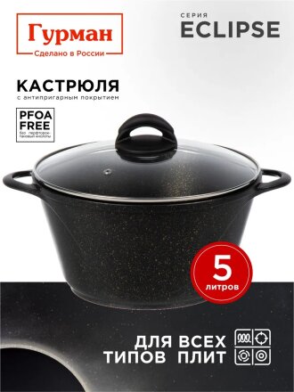 Кастрюля алюминий, антипригарное покрытие, 5 л, крышка стекло, Гурман, Eclipse, ГМк503ЭКИ, индукция