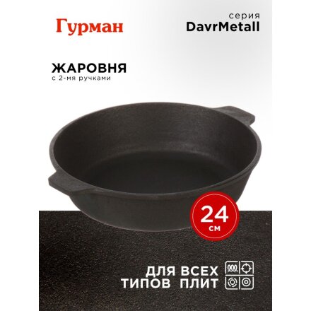 Жаровня чугун, 24 см, с двумя ручками, Гурман, DavrMetall, индукция