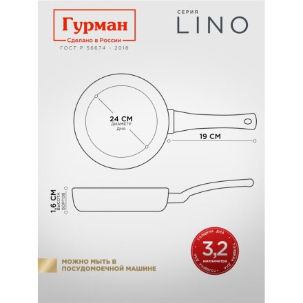 Блинница алюминий, 24 см, антипригарное покрытие, Гурман, Lino, ГМб241ЛИ, пластиковая ручка, индукция