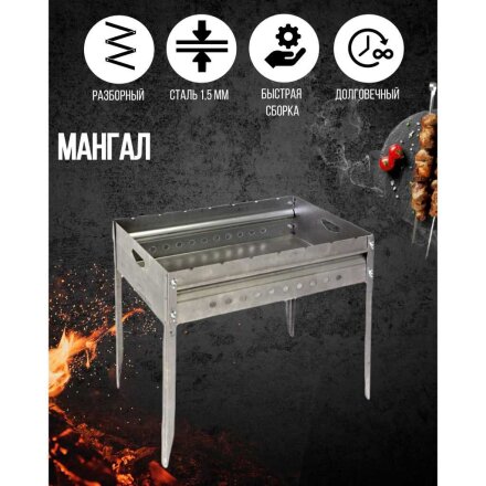 Мангал 620х385х140х700 мм, 1.5 мм, разборный, SM-31