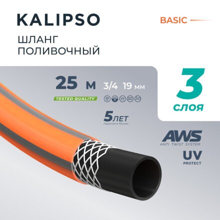 Шланг поливочный, 3/4 '', внутренний d19 мм, 15 атм, армированный, 25 м, 3 слоя, Kalipso, Basic, ПВХ, AGL213425G