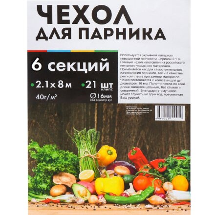 Чехол для парника 2.1х8 м, спанбонд, 40 г/м2, для парника 6м, 21 клипса