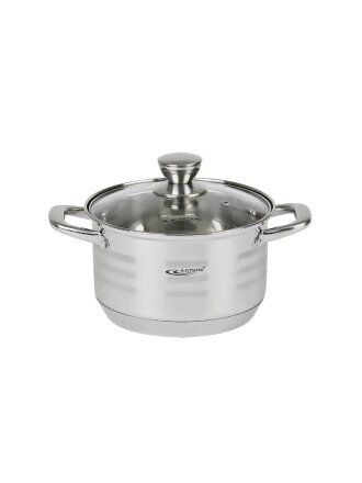 Ковш нержавеющая сталь, 1.8 л, крышка стекло, ручка нержавеющая сталь, индукция, Катунь, Элис, КТ16-К